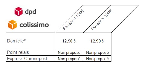 LES FRAIS DE PORT VOUS SONT OFFERTS* À PARTIR DE 100€ D'ACHAT (livraison domicile ou point relais) POUR UNE LIVRAISON STANDARD EN FRANCE MÉTROPOLITAINE.