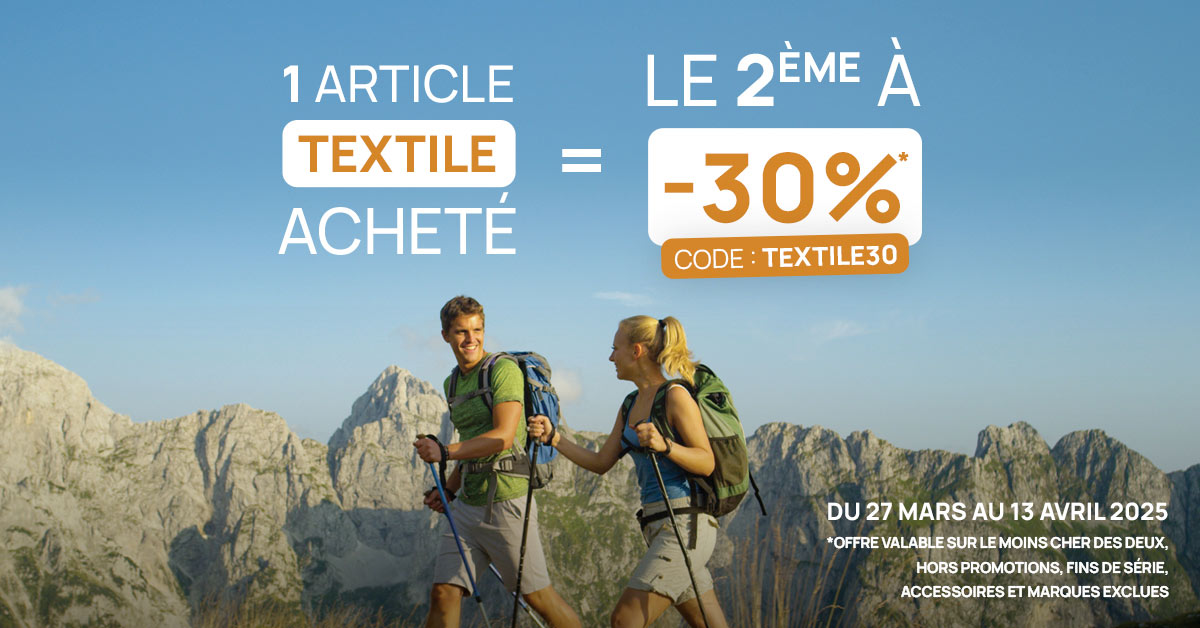 ? Un article textile acheté = le deuxième à -30%* avec le code TEXTILE30 du 27 mars au 13 avril 2025 !
