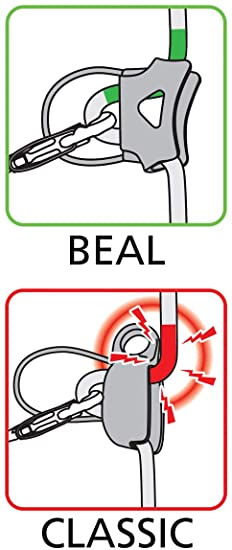 À utiliser avec un mousqueton HMS (type H) ou Unidirectionnel (type T) pour connecter au pontet, et compléter avec un mousqueton type B pour l'accrocher en grande voie au relais (assurage du haut, aubloquant, de 1 ou 2 seconds de cordée).