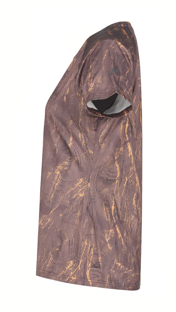 Le t-shirt Magnula Purple Print de la marque Rukka est un haut à manches courtes pour femme très confortable et respirant pour toutes vos sorties trail en période estivale ou sous une veste le reste de l'année.
